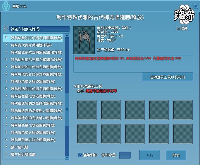 特殊灿烂的古代御龙师翅膀(释放)
