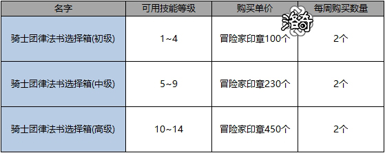 12.冒险家印章商店新增[骑士团律法书选择箱]道具。
