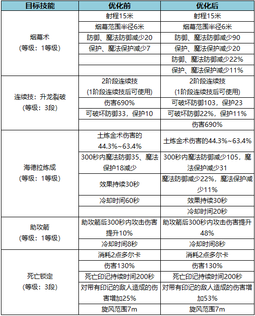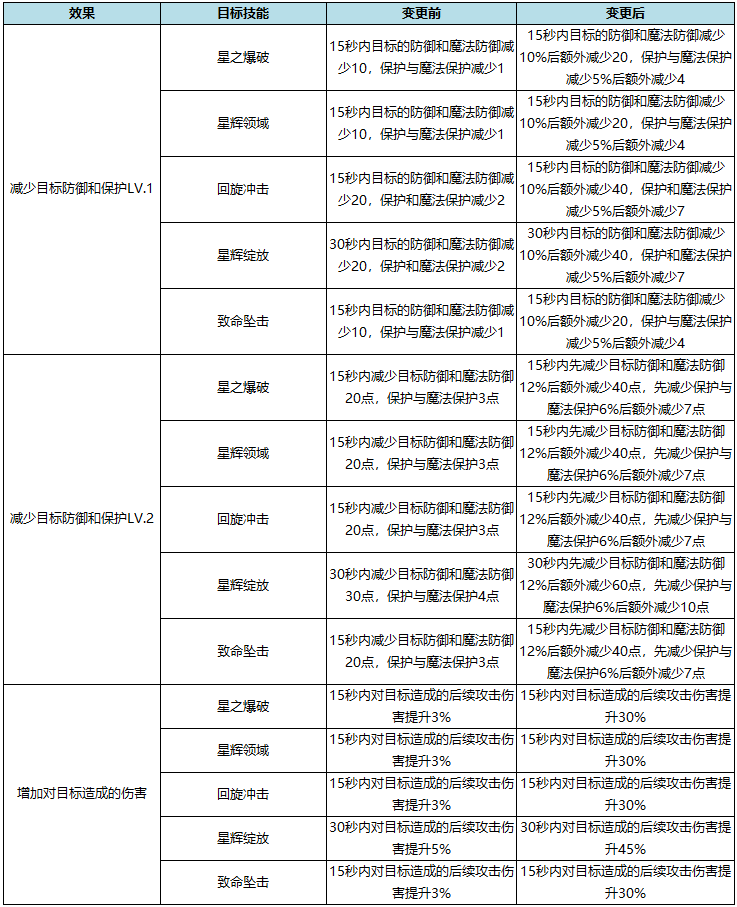2.部分赋予减益效果的技能将进行调整。(以人类种族最高等级为准)