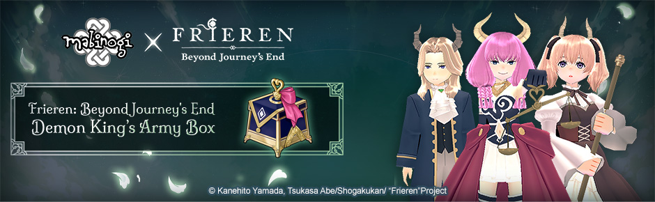 Introducing a special sale, including a box containing items inspired by Frieren: Beyond Journey's End. Includes items such as Special Outfits, Beauty Coupons, Appearance Scrolls, and Titles! Special items have unique idle animations resembling members of the Demon King's Army! Check out the details below!