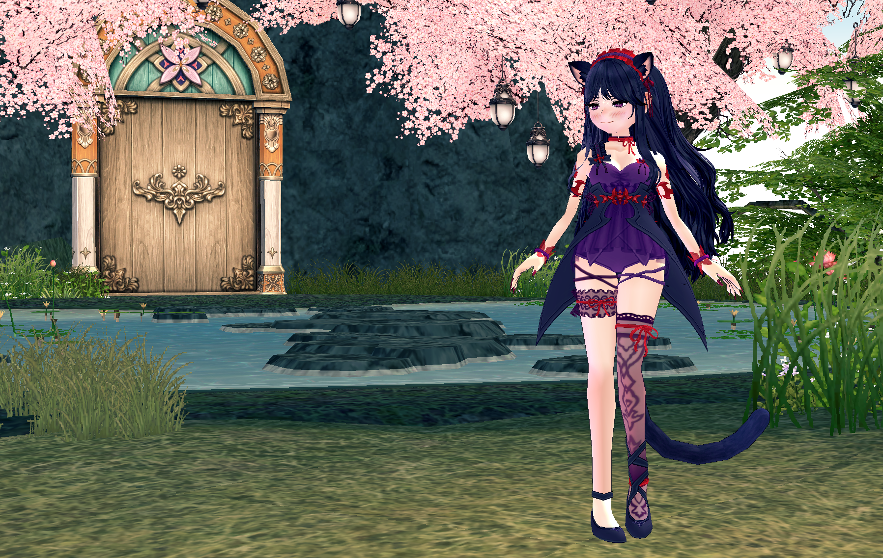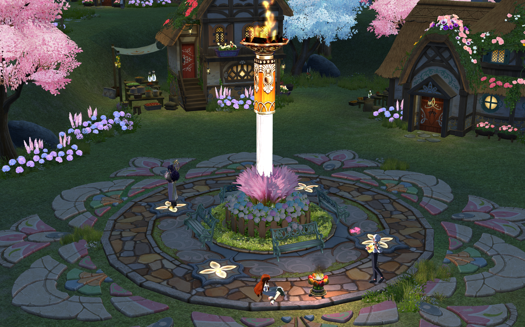 I love this time of year with the many blooms and blossoms abound~ What better place to experience this beauty than on the idyllic shores of Doki Doki Island? Walking the trails and flying through the gardens is the heart of a tranquil experience. The air is filled with the sweet scent of the local flora, gentle breezes flutter through the sugary pink and blue trees, and precious fauna enliven the island. With Margaid's blessings, much peace and happiness is to be had.